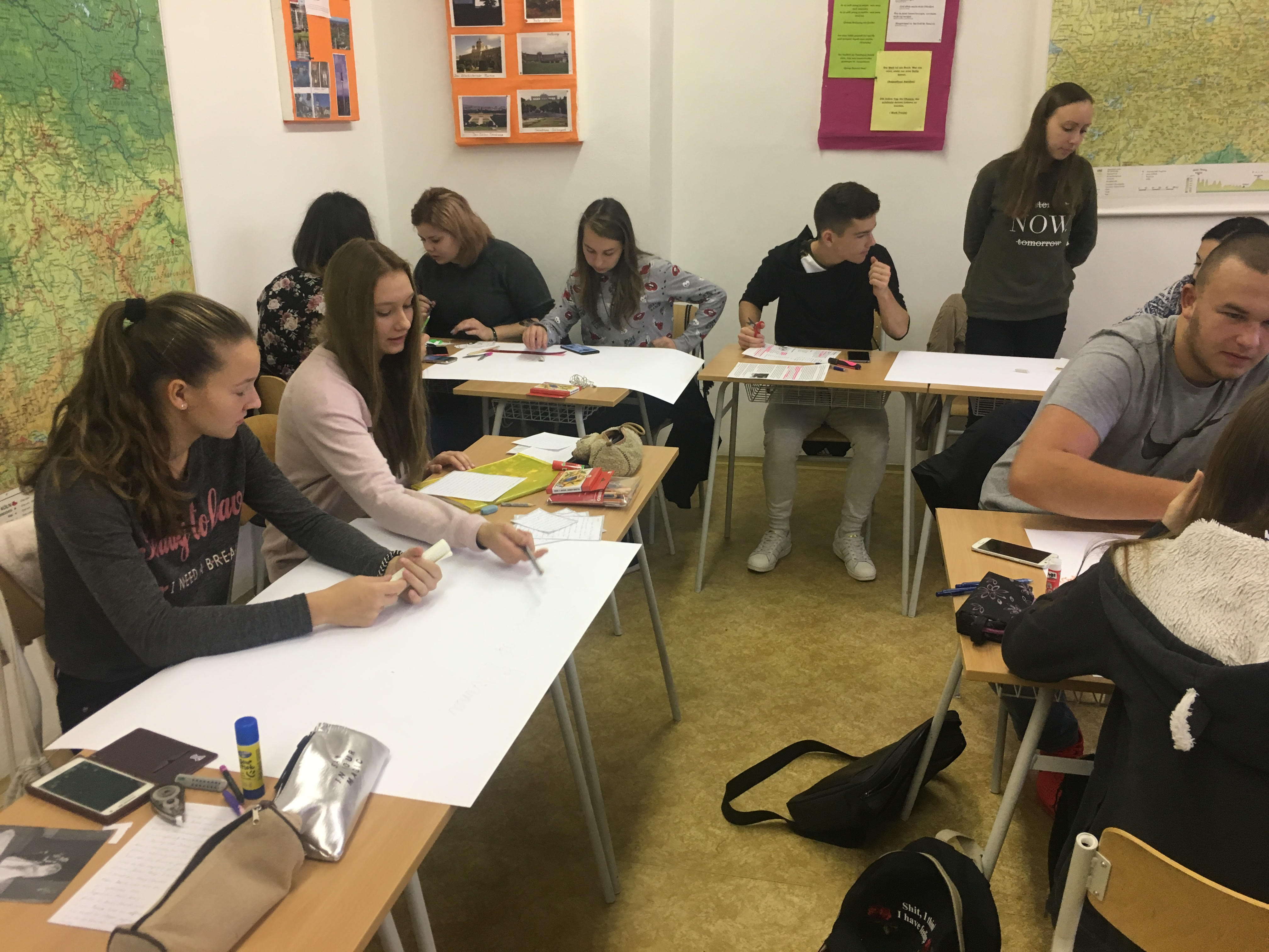 Iskolánkon hatodik alkalommal rendeztünk a „Nyelvek európai napja” alkalmából iskolai programot. A nyelvi nap három előadó beszámolójával kezdődött. Bartalos Tünde Amerikában és Angliában megélt élményeiről, Katona Ágnes Írországról és Antal Tamás az utazásairól mesélt diákjainknak. Ezután diákjaink három fős csapatokban kvíz kérdéseket oldottak meg, és letesztelhették mennyire ismerik az angol- valamint németül beszélő országok szokásait, kultúráját. A kvízt követően a csapatok plakátokat készítettek szabadon választott témára. Büszkék vagyunk diákjainkra, hogy évről évre egyre kreatívabb plakátokkal kápráztatnak el bennünket.