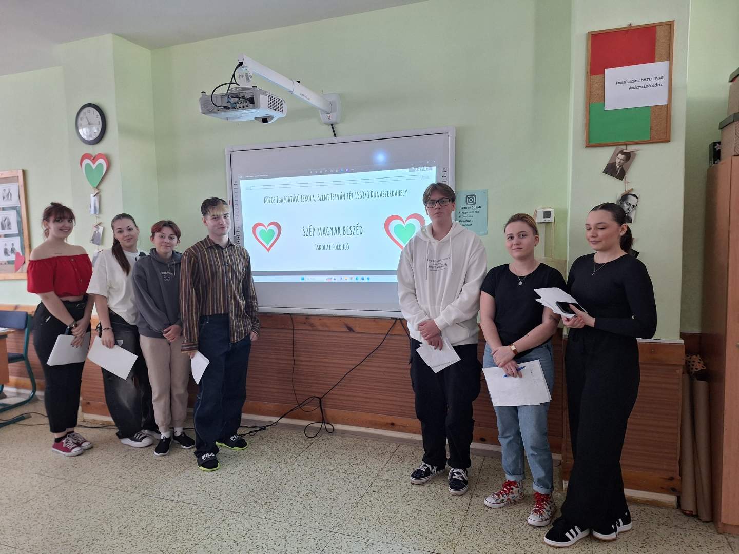 2024. február 22-én rendeztük meg a Szép magyar beszéd verseny iskolai fordulóját. Versenyzőinknek egy ismert és egy ismeretlen szöveget kellett megfelelő hanglejtéssel, jó kiejtéssel felolvasniuk, ill. egy konkrét szövegalkotási feladatot kellett megoldaniuk. Diákjaink felkészültek és rendkívül kreatívak voltak.