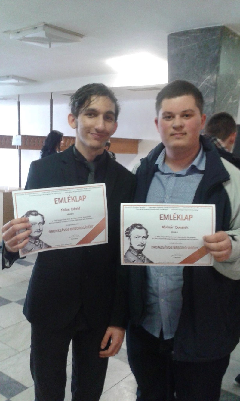 Mindkét diákunk bronzsávos minősítésben részesült.